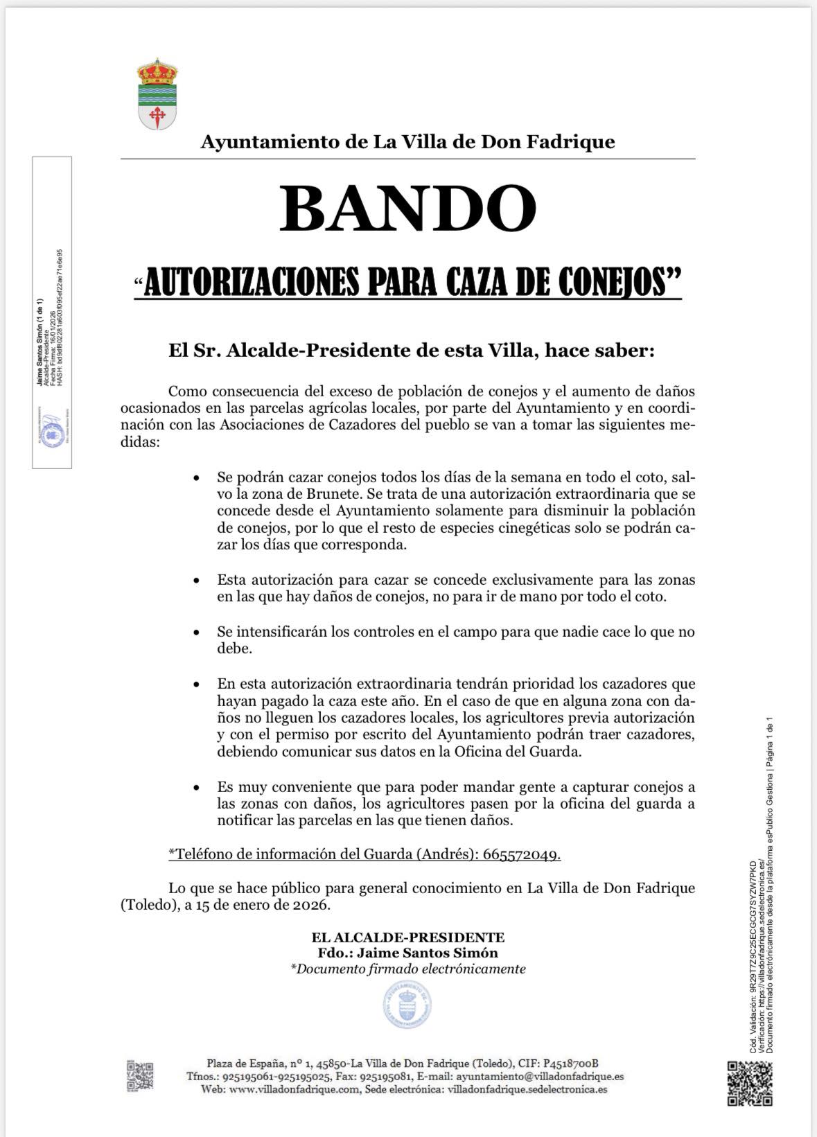 Leer más...El Ayuntamiento articula una autorización especial para la Caza de Conejos en La Villa de Don Fadrique