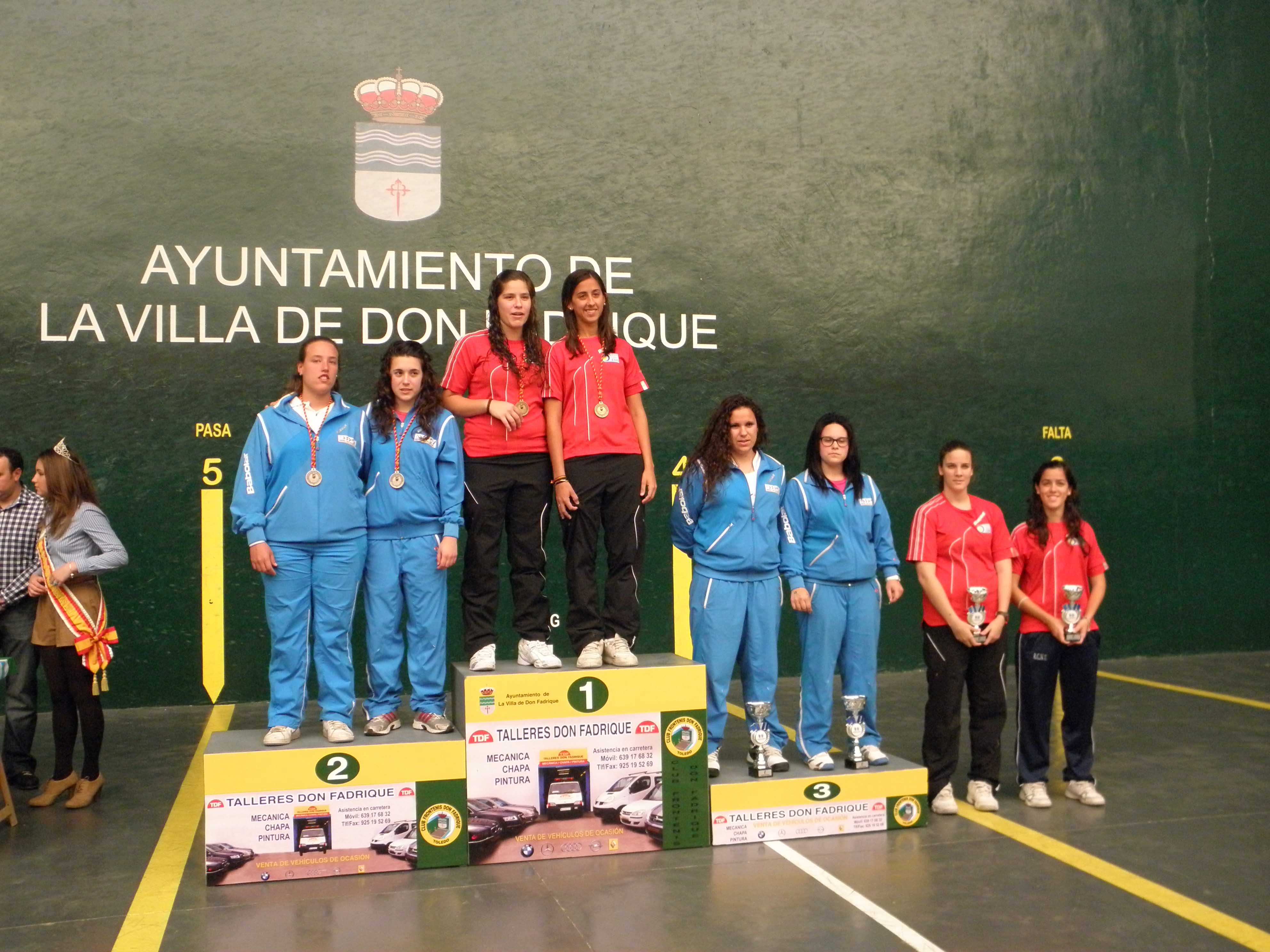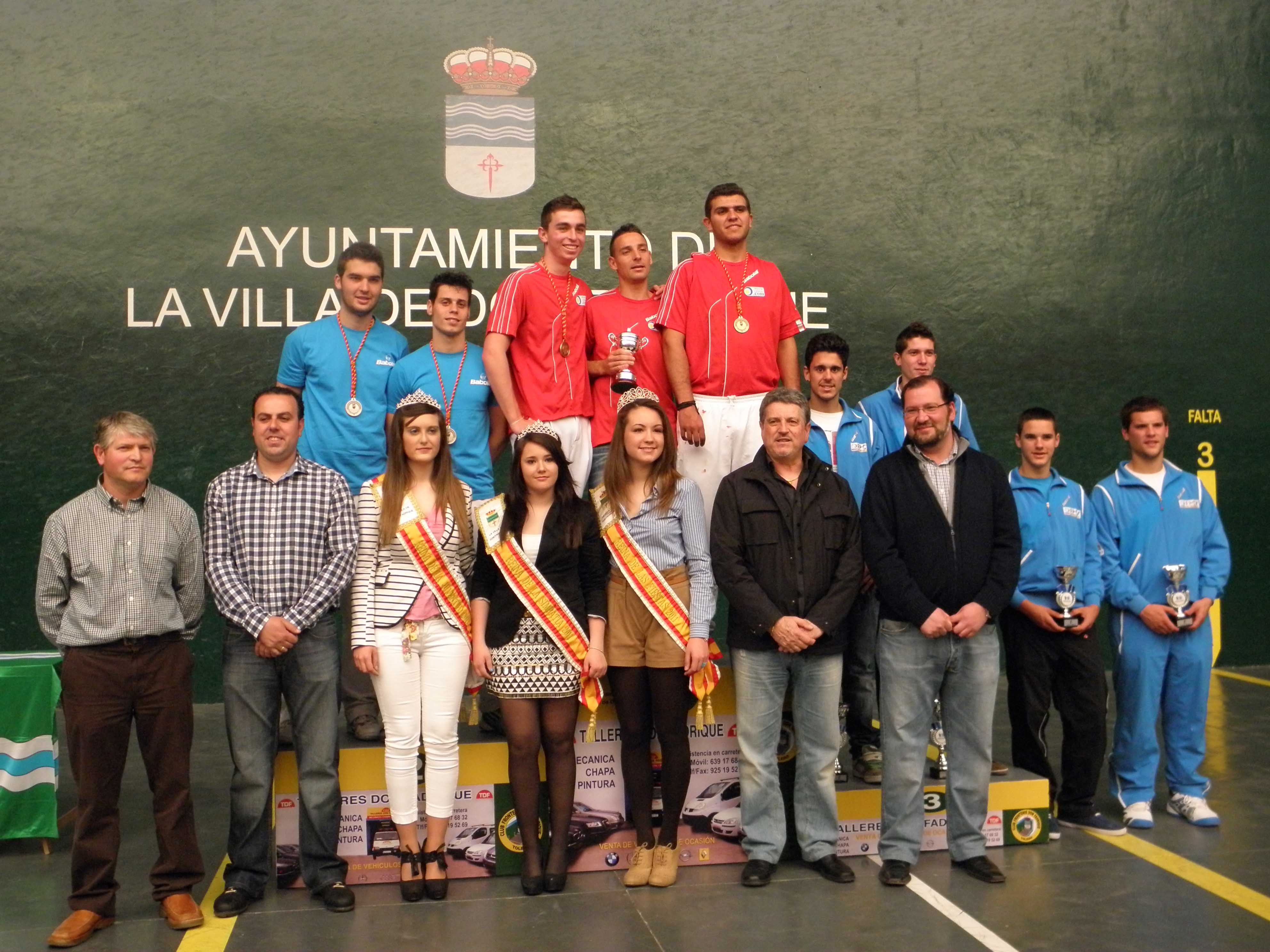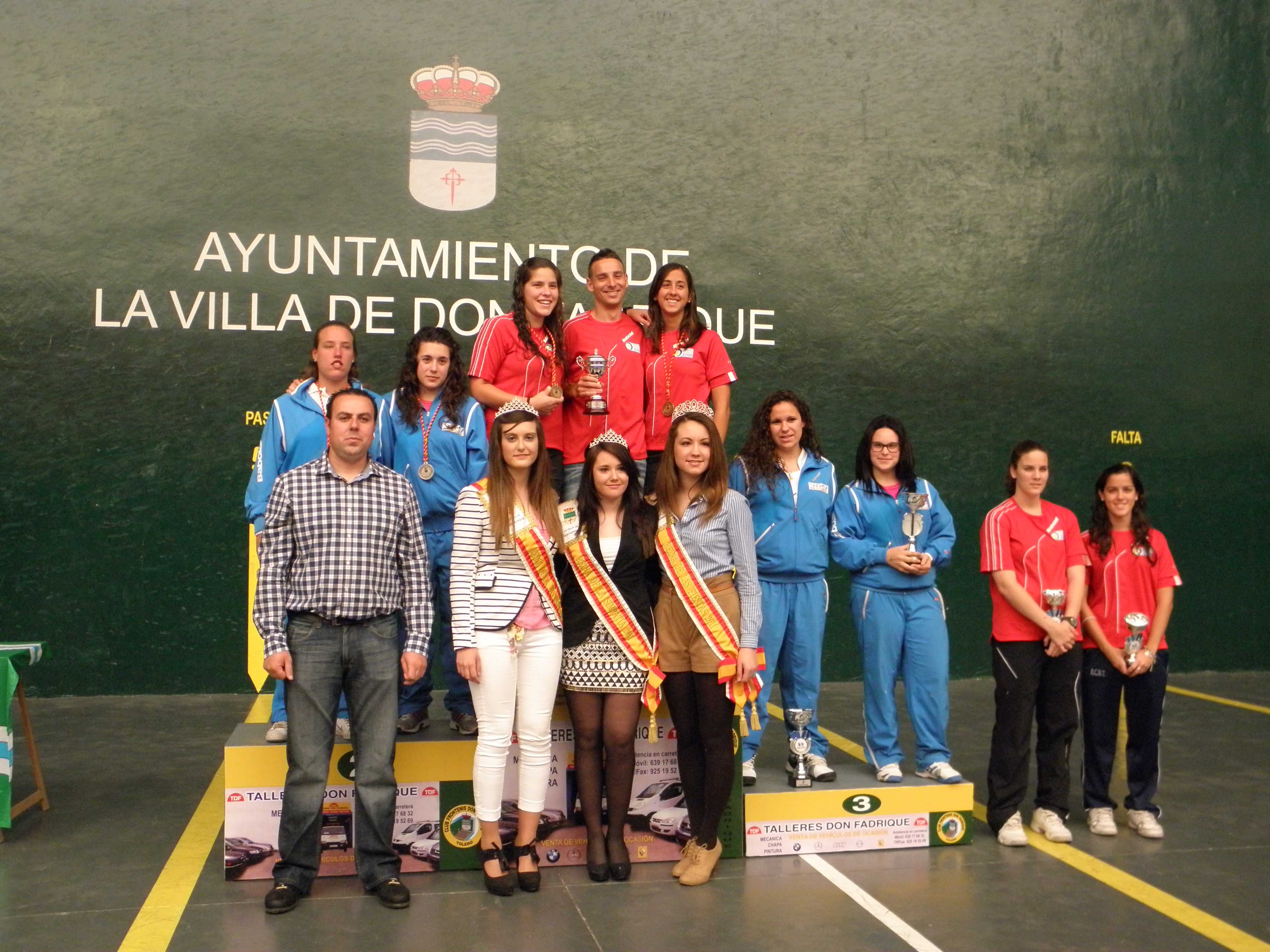La entrega de trofeos tuvo lugar al mediodía del pasado domingo, 6 de mayo, con la presencia, entre otros del presidente de la Federación Española de Pelota, Julián García Angulo, el presidente de la Federación de Castilla-La Mancha de Pelota y del Club Frontenis "Don Fadrique" organizador del Torneo, Félix Manzanero, el alcalde Jaime Santos Simón, el concejal de Deportes, Carlos Díaz-Maroto Maqueda, junto a las tres reinas de las fiestas de la localidad.