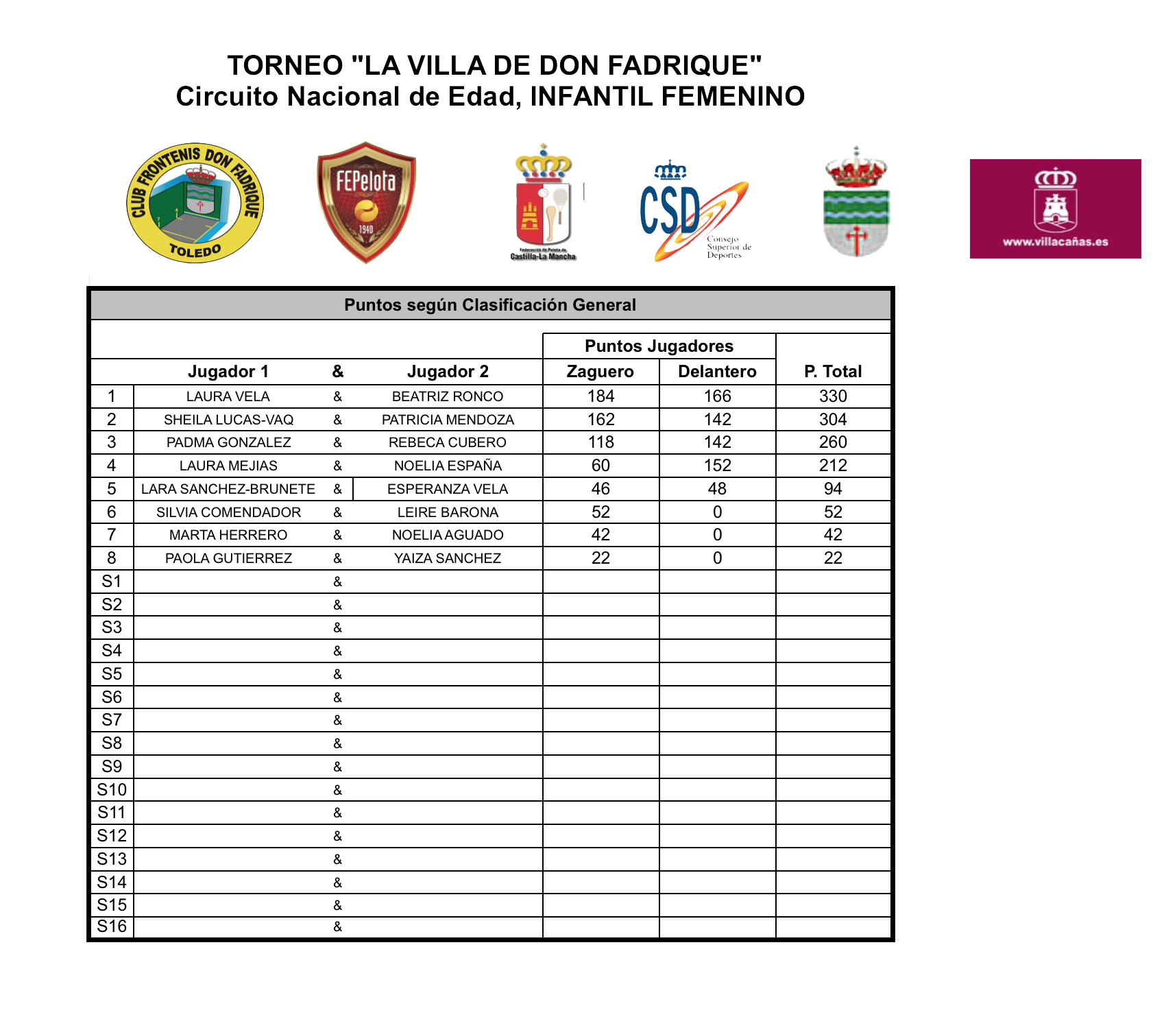 Clasificación Cadete Femenino Pelot...