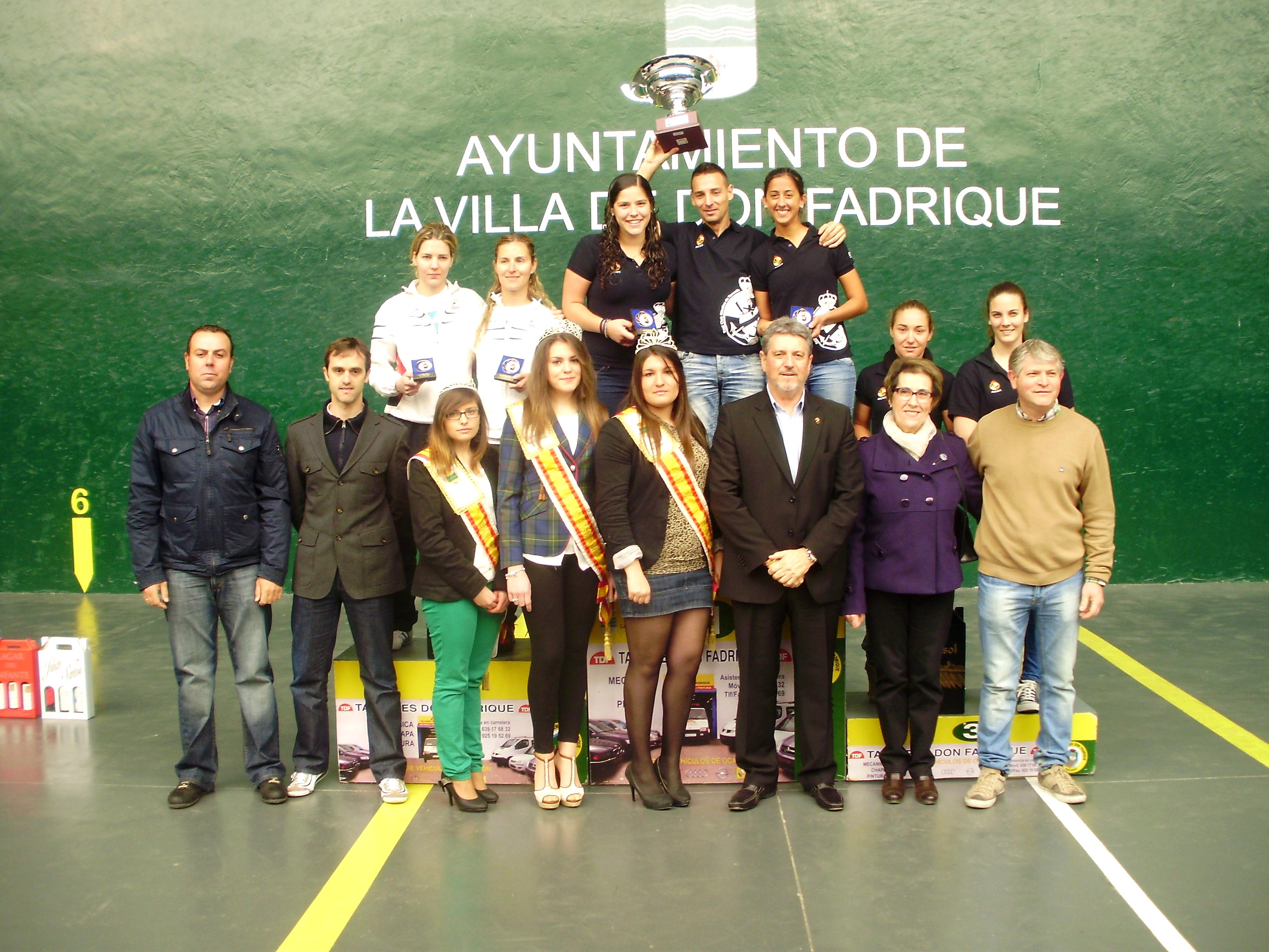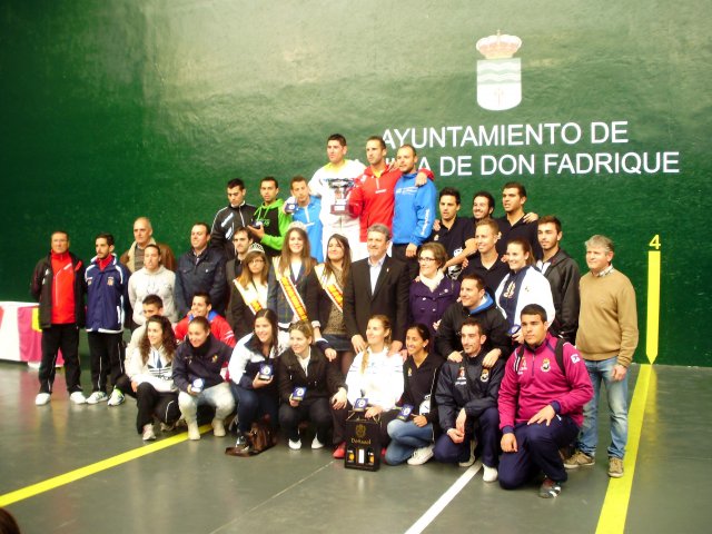 En la entrega de trofeos, estuvieron presentes, entre otros, el presidente de la Federación Española de Pelota, Julián García Angulo, y su director técnico deportivo, Xavier Asiaín, el concejal de Deportes del Ayuntamiento de La Villa de Don Fadrique, Carlos Díaz-Maroto, la concejala de Festejos, Mª Ángeles Díaz-Maroto y el presidente de la Federación de Castilla-La Mancha de Pelota y organizador del torneo, Félix Manzanero, además de las reinas de las fiestas de la localidad.