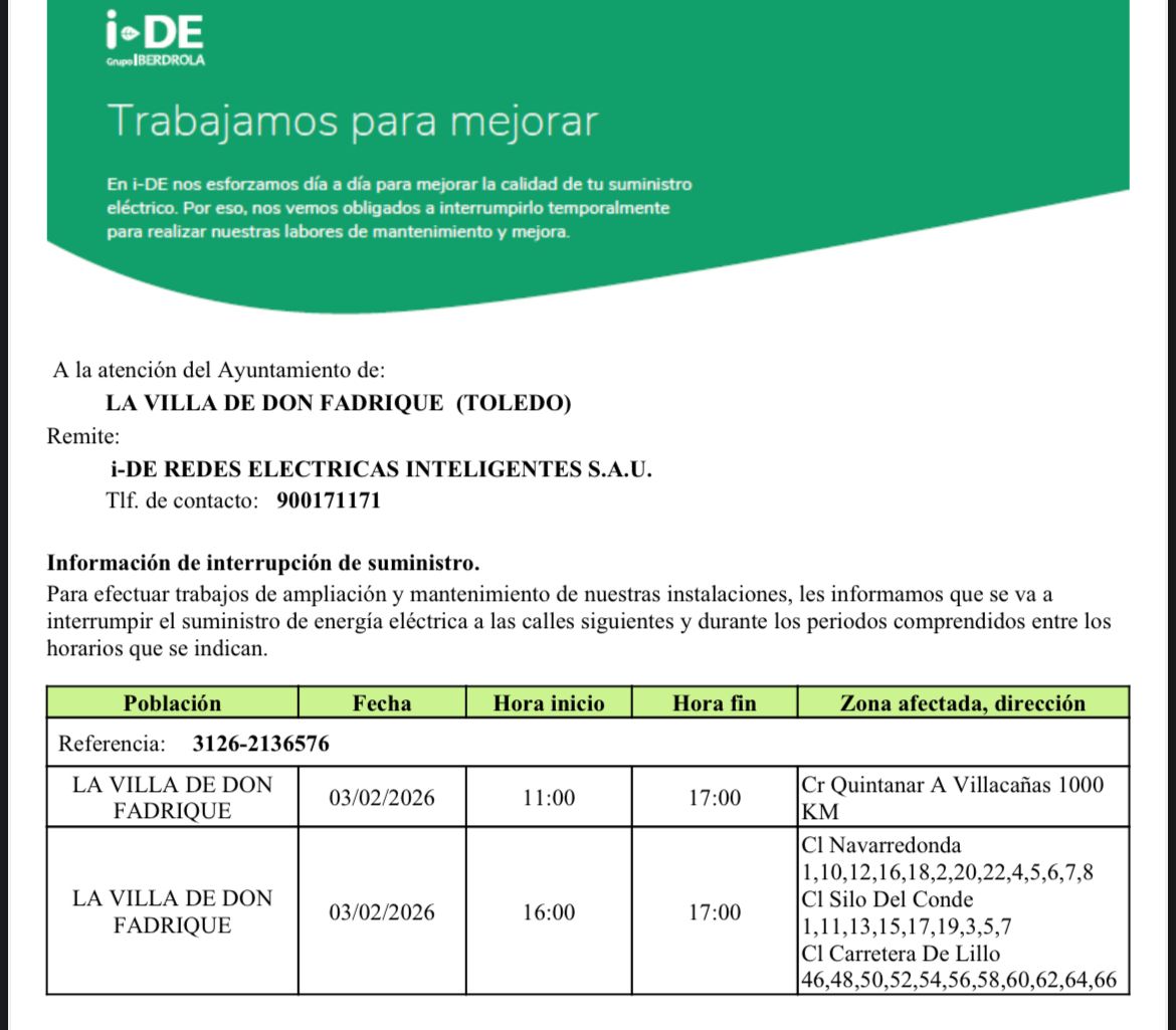 Contacto Iberdrola - Ayuntamiento de La Villa de don Fadrique - Toledo