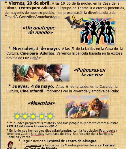 Como cada año el Ayuntamiento de La Villa de Don Fadrique, ha preparado diferentes actividades, con motivo del día del libro, que se celebra el próximo 23 de Abril. Cine, teatro, la lecturas colectivas, son algunas de las propuestas que se recogen en la Semana del Libro 2017.